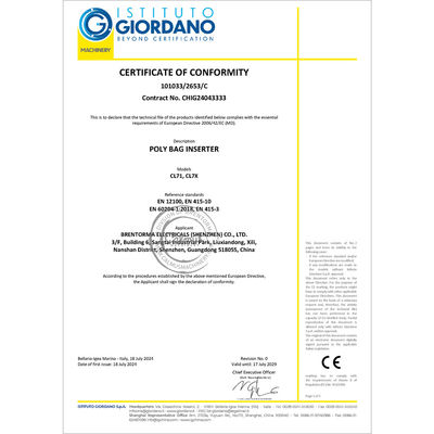 Calmus Machinery has recently received CE certification from Istituto Giordano for our Poly Bag Inserters CL71 and CL7X. This certification complies with the following machinery standards: EN 12100, EN 415-10, EN 60204-1:2018, and EN 415-3. Istituto Giordano is a renowed Certification Body for products, processes, materials, and services, headquartered in Italy. They are a European Notified Body (No. 0407) for Directive 2006/42/EC Machinery.